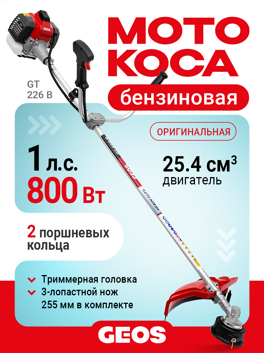 Мотокоса GEOS GT 226 B – это отличный выбор для решения задач по расчистке территорий и уходу за ней, она станет вашим надежным помощником в решении самых разнообразных задач. Приобретите GEOS GT 226 B и оцените качество и эффективность работы на высоком уровне!