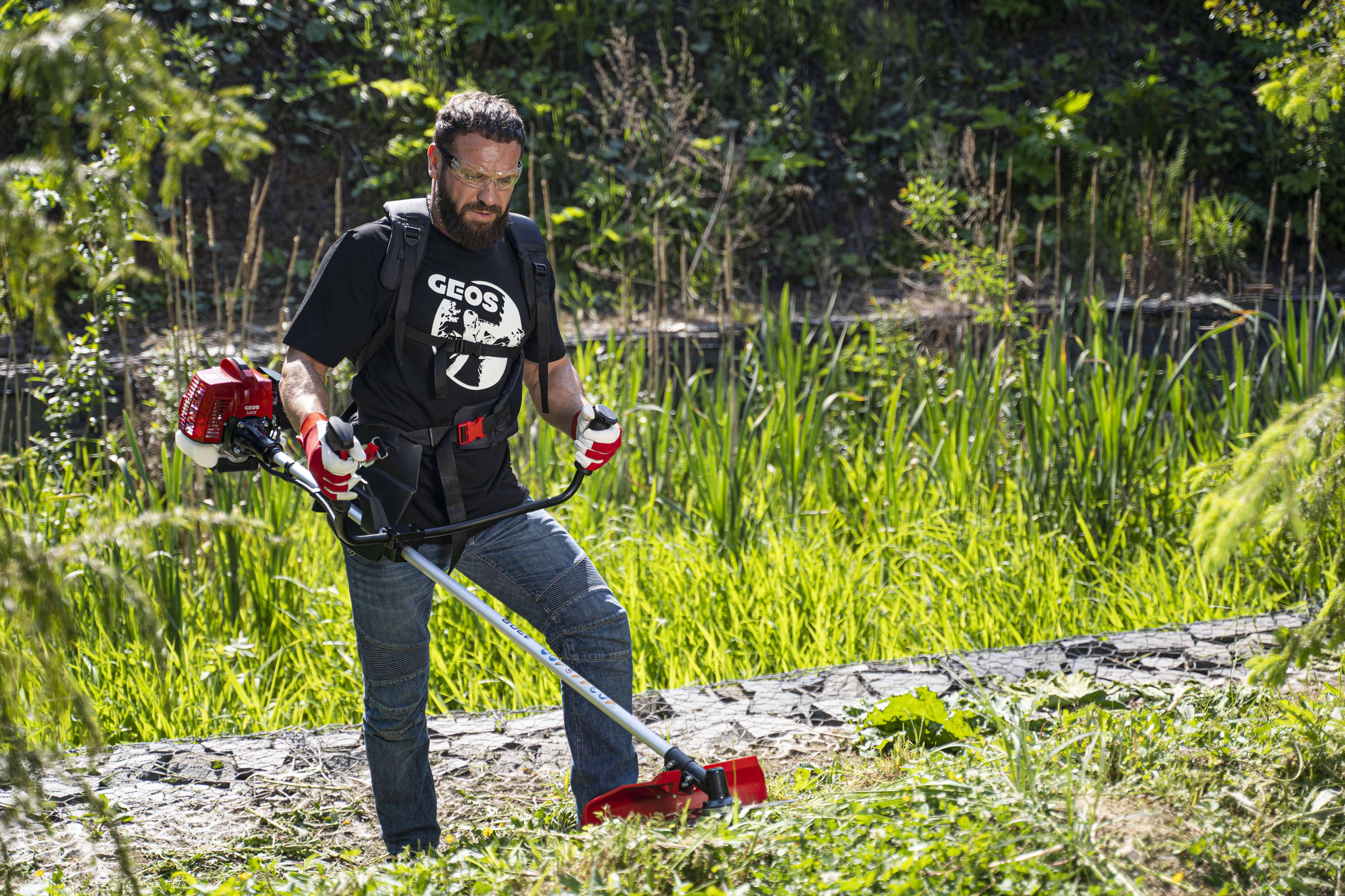 Головка триммерная GEOS Max M10х1.25, левая резьба, 115мм (Fast&Easy, полуавтоматическая, полупрофессиональная) (227619); Нож GEOS Max 255мм, 25.4мм, 3-лопастной для мотокос (212906); Ремень ранцевый для мотокосы бензиновой GEOS Max Premium 130B (419405); Полимерная защита для работы триммерной головкой и ножом по траве; Мерная емкость для приготовления топливной смеси; Набор инструментов; Инструкция по эксплуатации